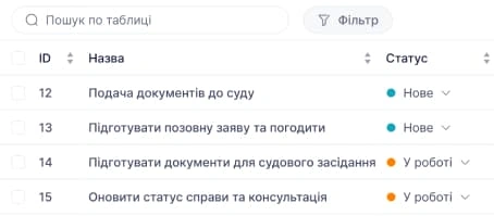 Відстежуй важливі дати судових засідань, подання документів та строки договорів.